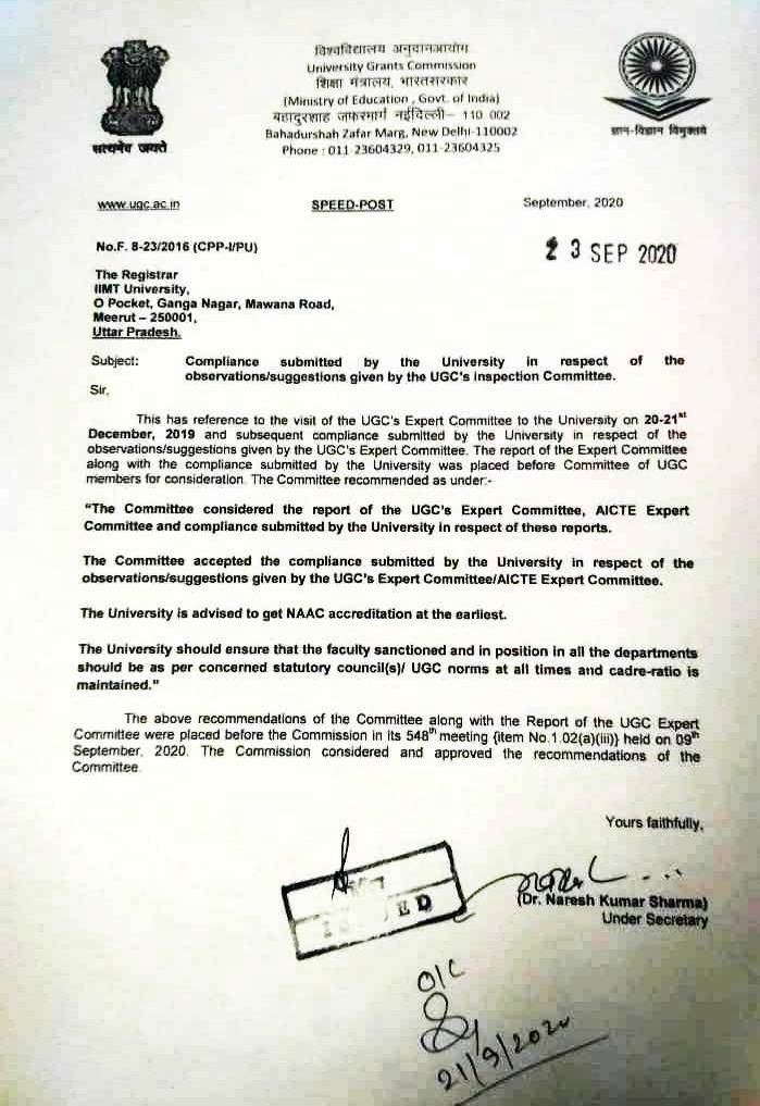 The IIMT University has been established under Uttar Pradesh Act Number 32 of 2016. Gazette notified by the Government of Uttar Pradesh Dated 16 September, 2016. As per procedure for establishment of any state private university as outlined in the act, the university shall promulgate its ordinances and statues/rules and regulations for conduct of various programs.